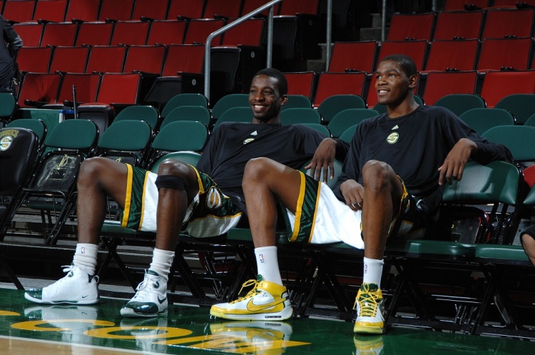 多尼爾-馬歇爾在個人生涯的第14個賽季的中期交易截止日被交易至西雅圖,他算得上是球隊中的“老大哥”,并和同樣在交易截止日加盟的阿德里安-格里芬,成了杜蘭特和杰夫-格林的導(dǎo)師,賽后,他倆經(jīng)常帶兩位新秀出去吃飯。有時為了緩解輸球的沮喪,他們會喝點酒,而當(dāng)時還未成年的杜蘭特(雖未到法定飲酒年齡)本不是愛熱鬧的人,卻也會假裝抿一口酒,融入其中。