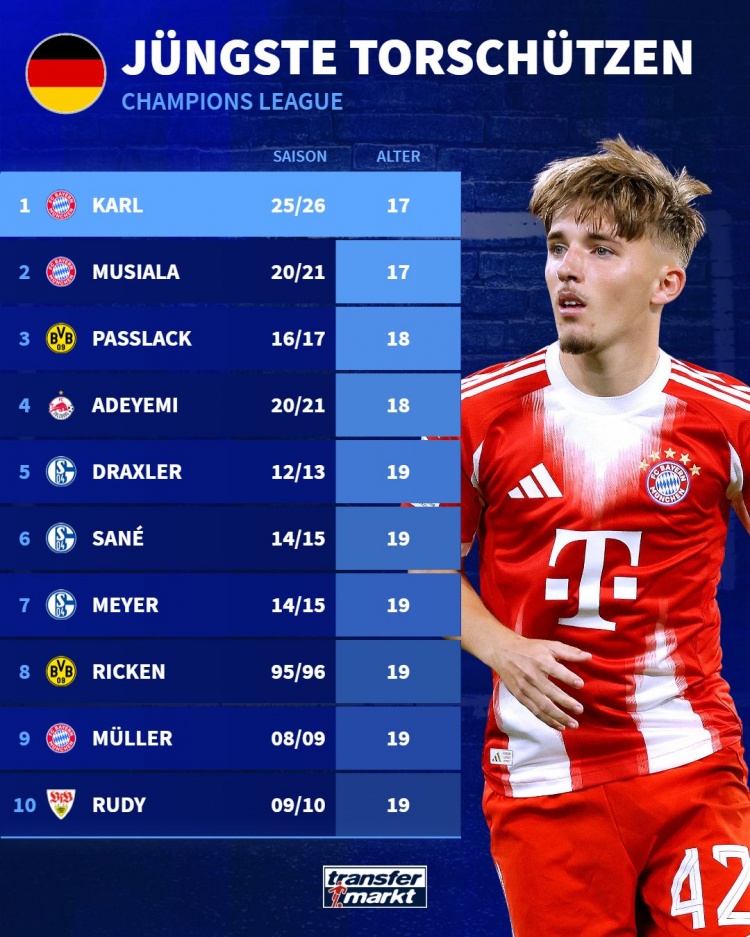 歐冠進(jìn)球最年輕德國(guó)球員: