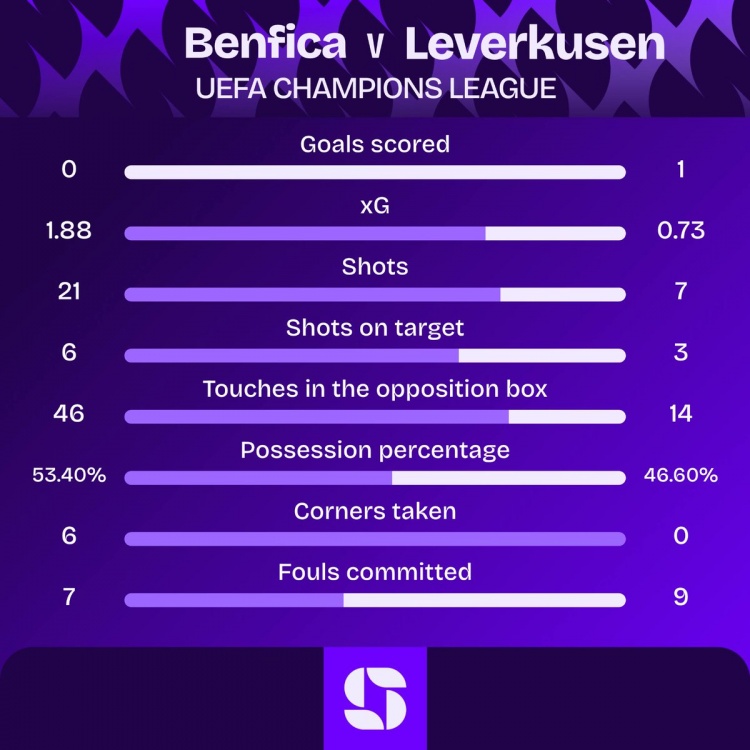 11月6日訊 歐冠聯(lián)賽階段第四輪比賽,本菲卡主場0-1不敵勒沃庫森。