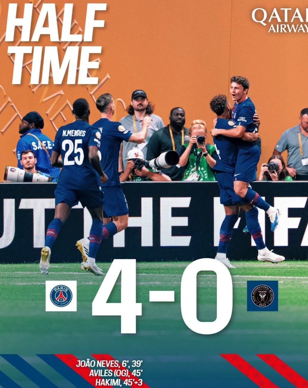 巴黎圣日耳曼vs邁阿密國(guó)際半場(chǎng)數(shù)據(jù):