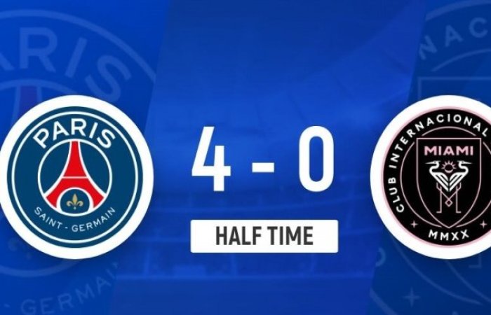 上半場比賽結(jié)束,巴黎圣日耳曼暫時4-0領先邁阿密國際。