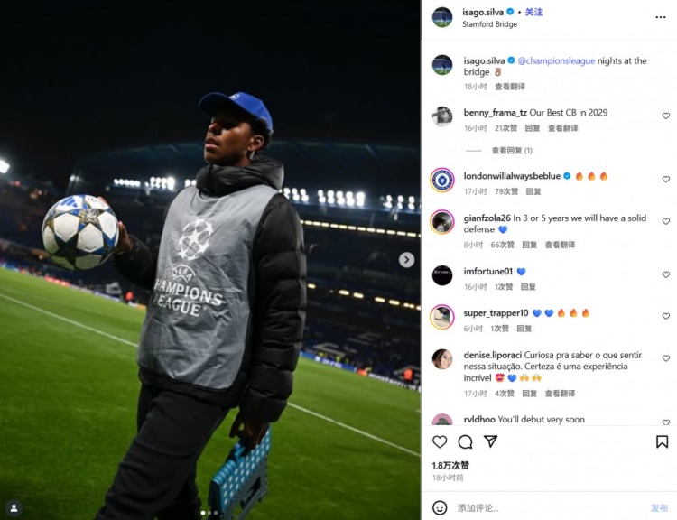 伊薩戈在社交媒體上分享了幾張自己在斯坦福橋擔(dān)任球童的照片,如果他未來真能成為一線隊的成功球員,這些照片將成為值得回顧的美好記憶。他的父親蒂亞戈早在2023年就曾表示,看到自己的兒子有朝一日為藍軍效力是他的夢想之一。