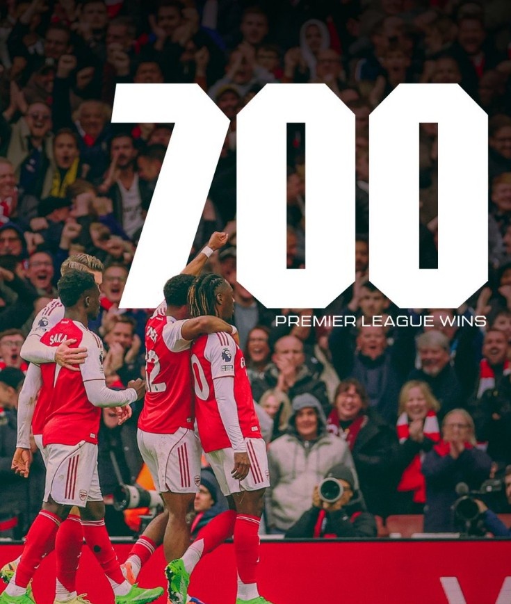 據(jù)統(tǒng)計,本場比賽也是阿森納隊史在英超取得的第700場勝利。