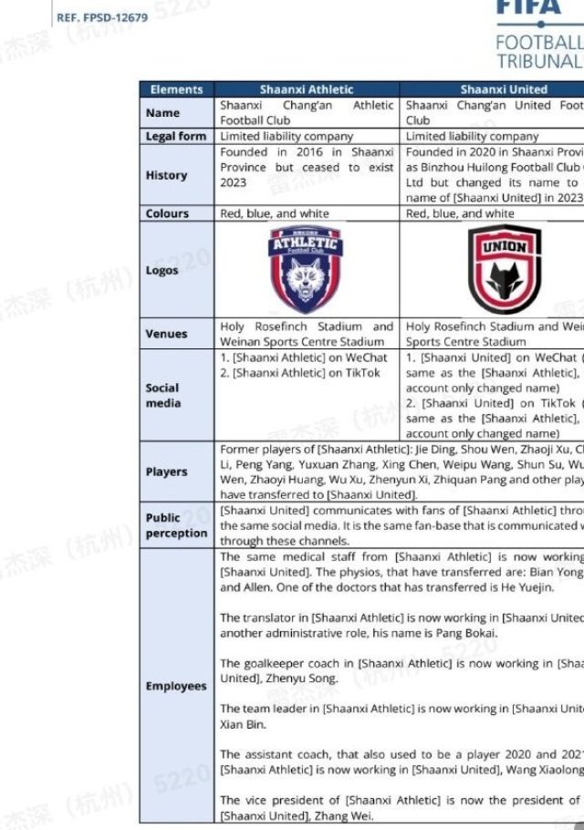 陜西聯(lián)合在應對訴訟時提出:俱樂部2020年就已經成立,并非是2023年才成立;前身是彬州輝龍,與長安競技也不是同一個法人實體。兩家俱樂部隊徽完全不同,長安競技俱樂部也從未使用過“聯(lián)合”的名字;使用原長安競技的球員,僅僅是出于競技層面的需要。而且長安競技尚未破產,球員仍可對其起訴,而不是來起訴陜西聯(lián)合。