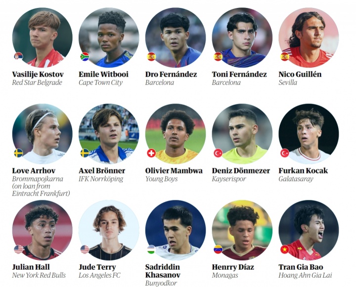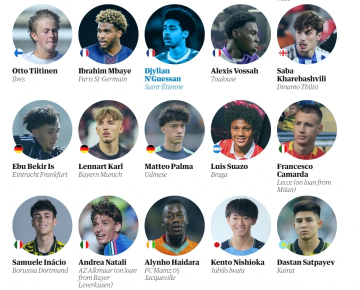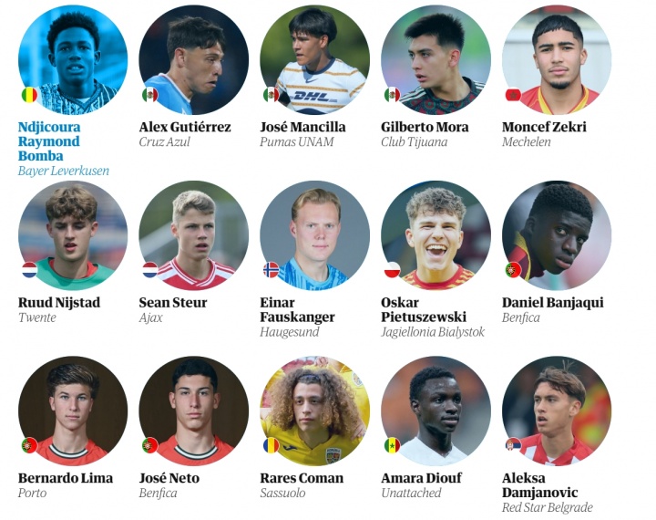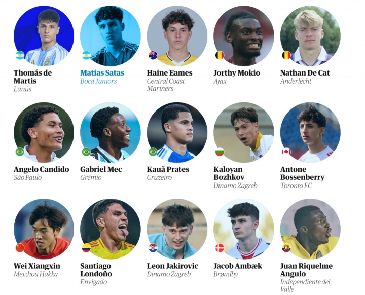 衛(wèi)報評足壇08年出生60大新星完整名單(不分名次):