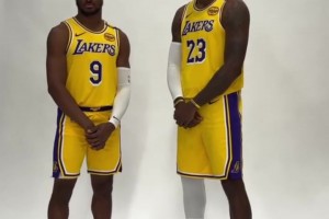 歷史性時(shí)刻!去年湖人媒體日,詹姆斯與布朗尼一起拍合照