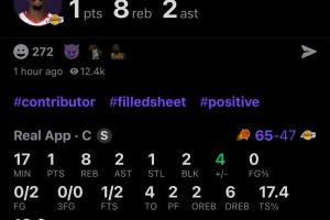 這數(shù)據(jù)令人難評?。“D今日2中0僅得1分8板1助2帽,還有4失誤