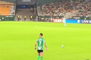 安東尼準備喝水時球隊發(fā)起進攻,立馬扔了水瓶,隨后助攻隊友破門