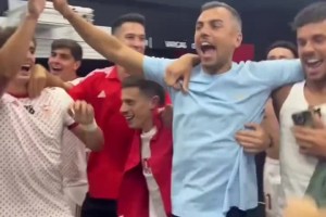 十年來首勝!塞維利亞4-1大勝巴薩,賽后球員們在更衣室瘋狂慶祝