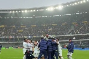 不容易!實(shí)拍:雨戰(zhàn)讀秒絕殺維羅納,國(guó)米眾將紛紛跑入球場(chǎng)慶祝