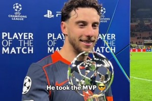 拼命三郎!國米大將奧古斯托領(lǐng)取歐冠單場MVP獎(jiǎng)杯