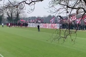 米蘭德比前,300名AC米蘭球迷抵達(dá)訓(xùn)練場為球隊(duì)加油鼓氣