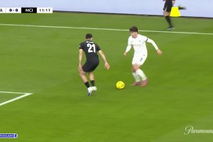 曼城落后!佛朗哥兜射死角中柱破門(mén),特拉福德飛撲無(wú)能為力