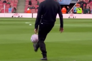 主教練正在熱身!瓜迪奧拉賽前閑著沒(méi)事顛了會(huì)球!
