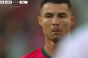 C羅2024年對陣愛爾蘭踢任意球時激勵自己,可惜球擊中了門柱