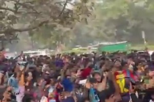 瘋狂的印度球迷等待梅西到來,現(xiàn)場不少人穿著阿根廷或巴薩球衣~