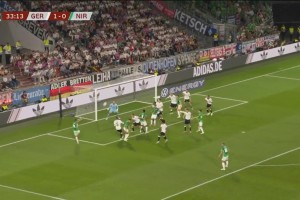 北愛爾蘭扳平!德國防守漏人,艾薩克-普萊斯后點(diǎn)墊射破門
